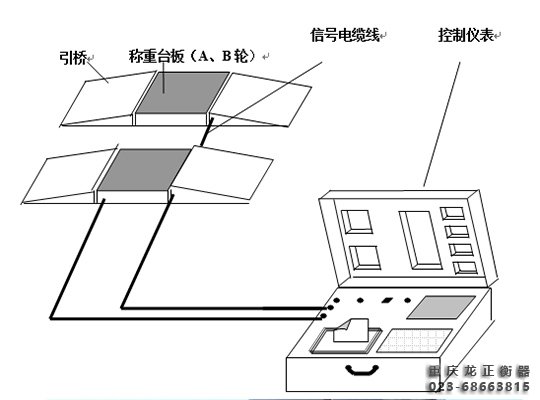 按图示方法进行简单的信号线插接安装后即可使用,整个安装时间仅需约3~5分钟。两称重台板放置的内侧距离为1.2~1.3m,并将称重台放置平稳无翘角。